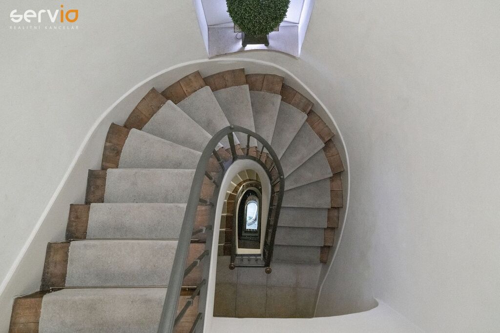 Významnou dominantou celého domu je skleněné schodiště navržené architektkou Evou Jiřičnou.