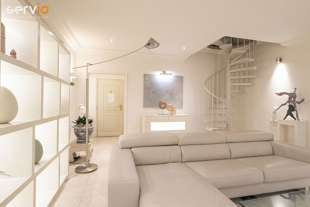 4.NP: Luxusní mezonet, který pokračuje do 5.NP. Nadstandardní vnitřní vybavení, koupelna: vířivá vana, parní sauna.