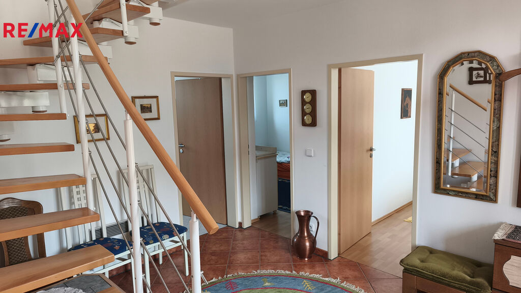 Nabízíme dlouhodobý pronájem rodinného domu na okraji Vojslavic. V přízemí je vstupní hala, ložnice, dětský pokoj, koupelna a WC a technická místnost s kompletním vybavením. V patře je velký obývací pokoj a kuchyň s jídelnou. Zároveň je zde vstup na prostornou terasu. K dispozici je také garáž a zahrada. Místnosti mají podlahové elektrické vytápění, v obývacím pokoji je také krb. Na domě jsou instalovány solární panely. Celý dům je ve výborném stavu, téměř nový a málo využívaný. Je kompletně zařízen všemi spotřebiči i nádobím. Měsíční nájem je 20.000,- Kč + 6.000,- Kč záloha na energie. K dispozici ihned. Vratná kauce 2x měsíční nájem. Provize RK 1x měsíční nájem.
