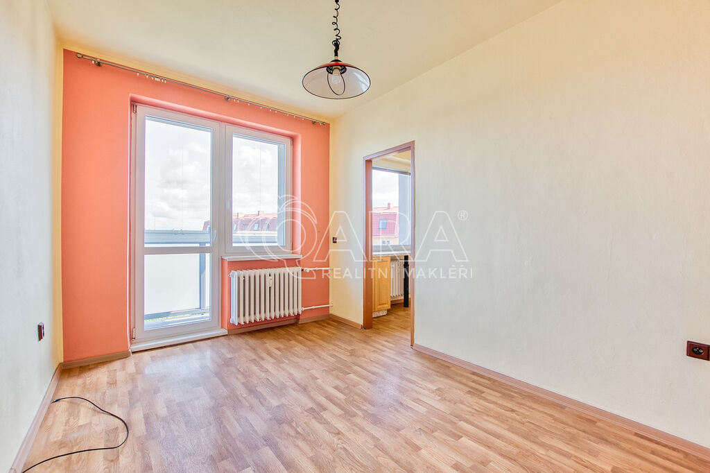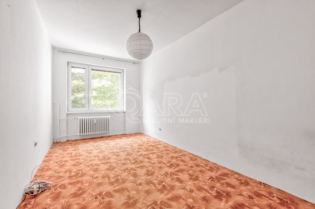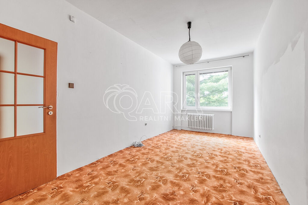 Obývací pokoj o ploše 14,8 m² má dřevěné parkety ve velmi slušném stavu, které přímo vybízejí k renovaci. I z tohoto pokoje je vstup na lodžii. Dětský pokoj (14,8 m²) je orientovaný na jih, má plastová okna a koberec, pod kterým se nacházejí původní dřevěné parkety. Ložnice o výměře 16,3 m² je také orientovaná na jih, podlahovou krytinu zde tvoří plovoucí podlaha.