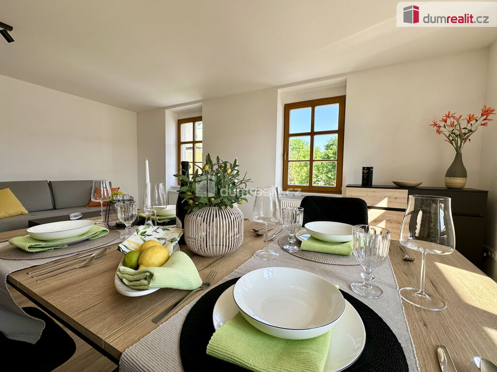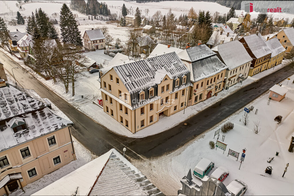 Dumrealit.cz Vám zprostředkuje prodej apartmánů na náměstí Sv. Vavřince v Horní Blatné, které se nachází v blízkosti několika lyžařských areálů jako je Plešivec, Potůčky nebo Klínovec. Apartmán číslo 10. se nachází v druhém patře, je o velikosti 60,5 m² s výhledem na náměstí a kostel Sv.Vavřince. Dispozice bytu 2+KK. Všechny apartmány jsou vybaveny sanitární keramikou v koupelnách, sprchovým koutem Walk-in, podlahovou krytinou a to v kombinaci velkoformátové dlažby a plovoucí podlahy v dekoru dřeva, obložkami, interiérovými a vstupními dveřmi. Nad rámec uvedené ceny je u tohoto apartmánu kuchyňská linka s jídelním stolem a zařízení obývacího pokoje. Součástí jsou také nádherné společné prostory a to včetně sklepního prostoru s možností posezení. Vytápění apartmánů je elektrické s dálkovým ovládáním s připojením na Wi-Fi. V apartmánovém domě se nachází 12 jednotek od 1+KK až po 3+KK různých podlahových výměr. Ke každému apartmánu patří jedno soukromé parkovací místo hned u domu a jedna sklepní kóje, vše je již započítáno v uvedené ceně. Několik apartmánů je již prodáno. Izolant obvodových stěn 16-18cm polystyrenové dílce a 28cm minerální vlna v podkrovní části domu. Nemovitost se nachází přímo na náměstí s výhledem na hory a kostel Sv. Vavřince. Koupě apartmánu je ideální také jako investice, kdy jsou Krušné hory celoročně navštěvovány turisty a Horní Blatná patří svým umístěním mezi nejvíce vyhledávané. V blízkosti apartmánu se nachází Blatenský vrch, Vlčí jámy a mnoho turistických a cyklo tras. Nemovitost s možností odpočtu DPH z uvedené kupní ceny. Doporučuji nezávaznou prohlídku objektu s možností vybrat si právě ten VÁŠ apartmán. Ev. číslo: 651559.