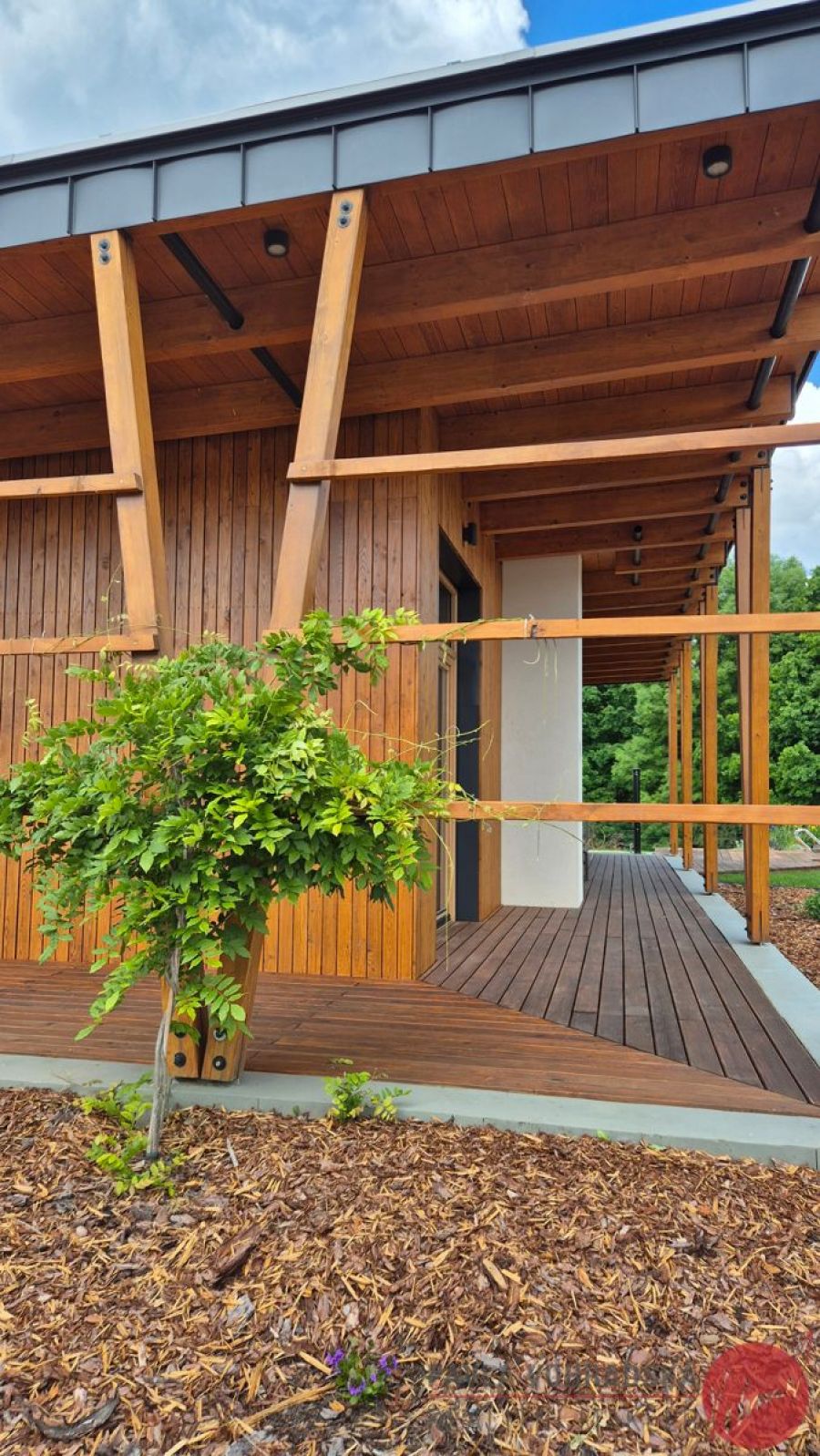 Kryté stání pro 2 vozy 44, 1 m s BIO střechou + zahradní sklad + další 2 parkovací místa