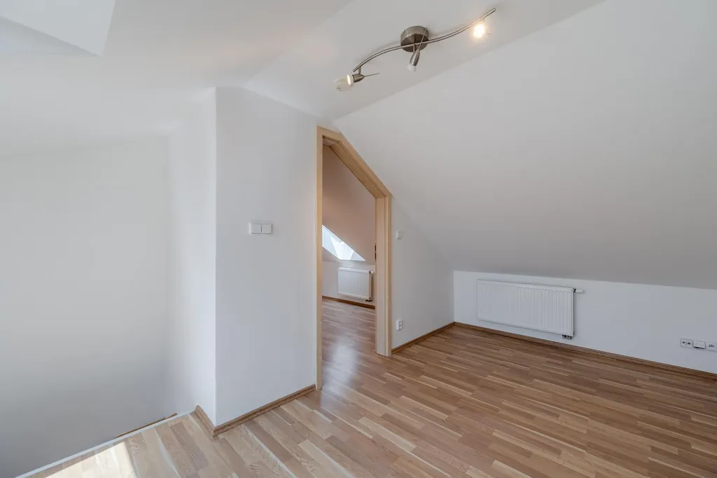 Dům i byt jsou v perfektním stavu, po právě dokončené částečné rekonstrukci. Samotný byt je velkoryse řešený, ve spodní úrovni bytu naleznete obývací pokoj s kuchyňským koutem, chodbu, 2 ložnice, koupelnu, samostatnou toaletu, komoru, v horní části bytu pak třetí ložnici. Kuchyňská linka vybavena spotřebiči. Koupelna s vanou. Bezpečnostní dveře, dřevěné parketové podlahy. Vlastní kotel na ohřev vody a vytápění. Klimatizace Wind Free. Tiché soukromé místo s výhledem na nebe.