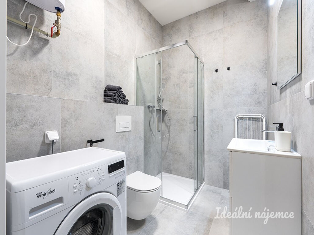 K dlouhodobému podnájmu nabízíme krásný nový, kompletně vybavený byt o dispozici 2+kk v klidné lokalitě Kyje vybavený inteligentním přístupem do domu i bytu. Byt o celkové výměře 56m2, se nachází ve 1. podlaží cihlového domu s podlahovým vytápěním.