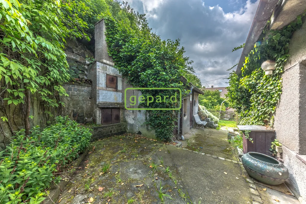 Na prvním pozemku (zastavěná plocha domu 53 m²) se nachází rodinný dům 3+1 určený ke kompletní rekonstrukci. Nabízí se zde možnost úpravy půdního prostoru a využití svahovitého terénu pro vytvoření terasovité zahrady s krásným výhledem na údolí, potok a okolní přírodu.