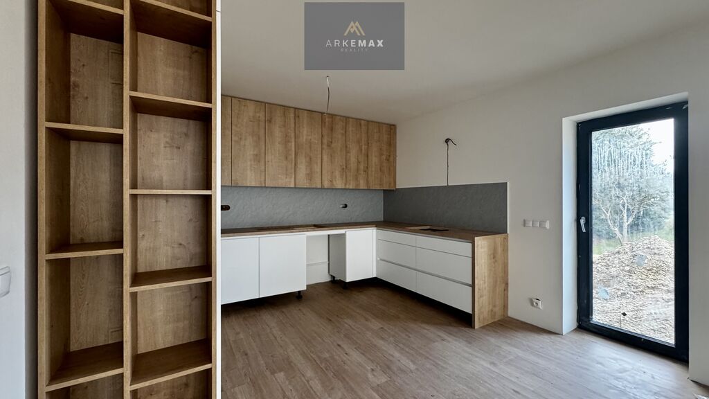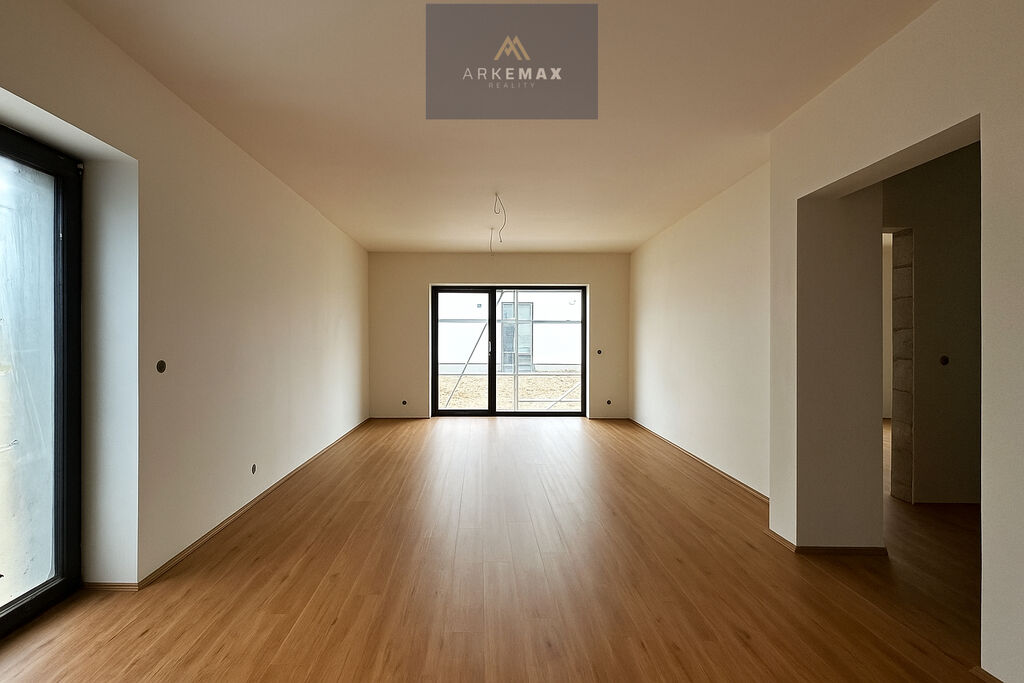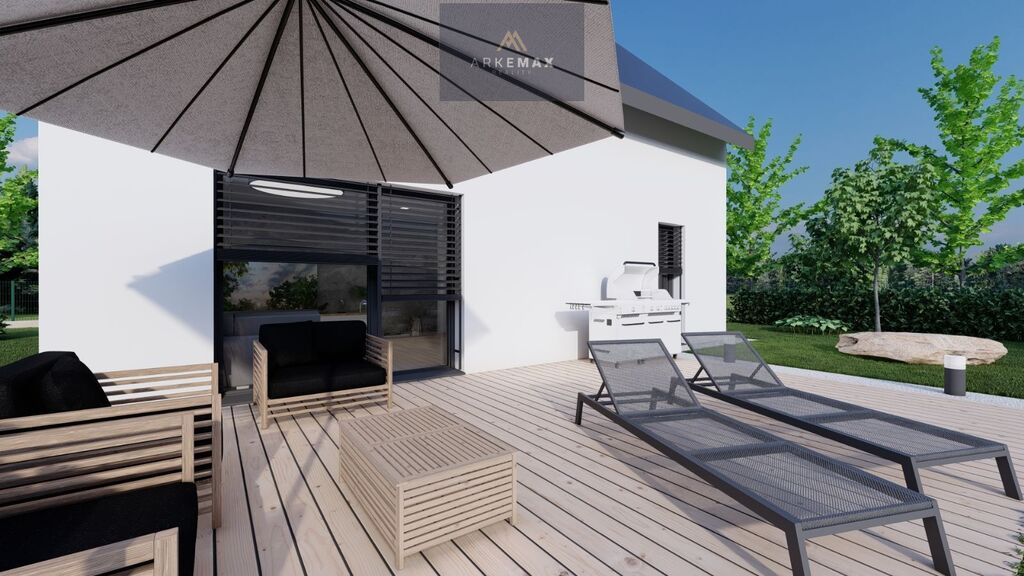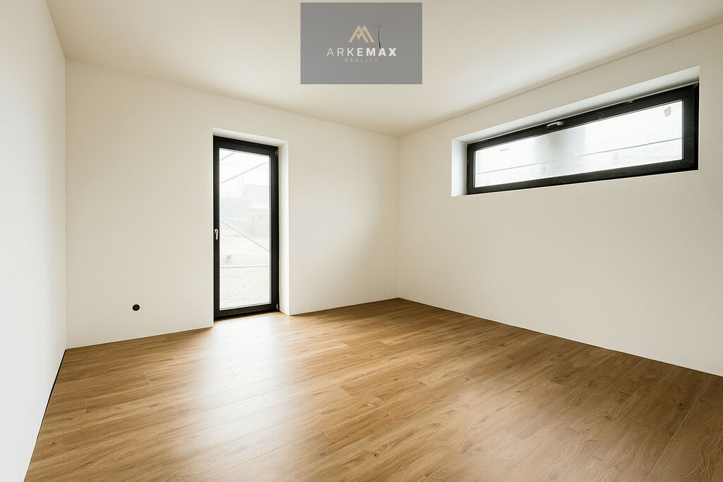 V přízemí se z chodby dostanete do obývacího pokoje spojený s kuchyňskou linkou s výměrou 36 m2. Dostatek místa, kde si rodinnou pohodu užijete po celý rok. V zimě vás bude hřát podlahové vytápění a v létě stačí otevřít velké dveře a celý prostor propojit se zahradou. Z chodby se dále dostanete do samostatného pokoje, ze kterého může být pracovna nebo třeba ložnice pro hosty. Koupelna v přízemí je vybavena sprchovým koutem a WC.