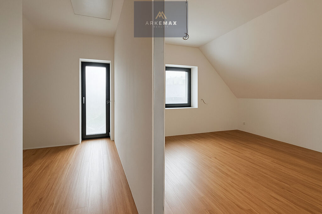 Pokud se vydáte nahoru do patra, čeká na vás chodba, ze které se dostanete do ložnice o výměře 22 m2, kde se bude pohodlně spát. Dále jsou zde dva pokoje o velikosti 17 m2 a 16 m2, místa je tu dost na relaxování i studium. V patře je druhá koupelna s vanou a WC, takže na ranní hygienu nebudete stát frontu.