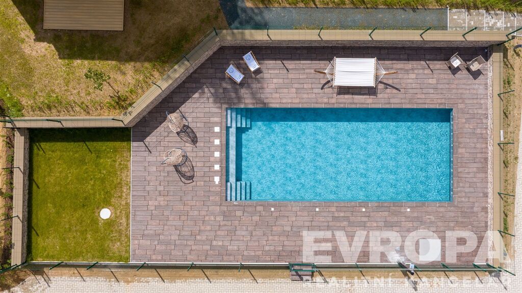 Nadstandardní provedení jako kámen, dřevo a slunné terasy. Tvoříme moderní design, který odolá času. Dbáme na funkčnost a je pro nás důležité, aby noví majitelé ocenili kvalitu zpracování a výběr materiálů. Na střeše apartmánové budovy budou fotovoltaické panely na výrobu elektřiny pro ohřev vody a bazénu (případně na osvětlení společných prostor).
