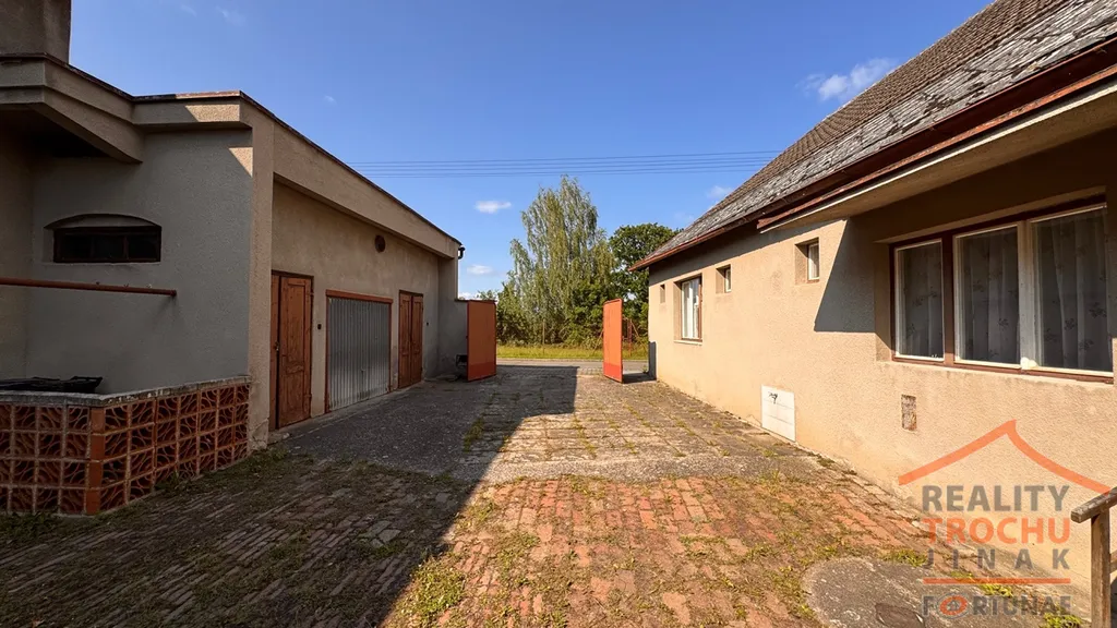 Nemovitost je částečně podsklepená, což poskytuje další úložné prostory, a na pozemku se nachází garáž, dílna a sklad, také kopaná studna.