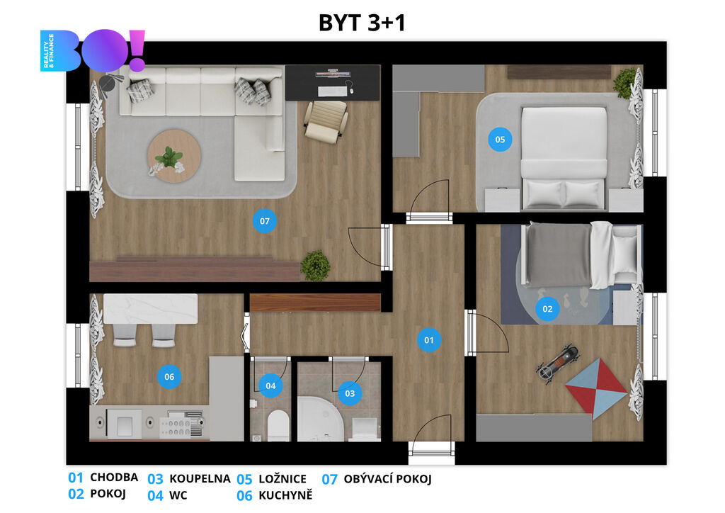 Právě pro vás máme v nabídce prostorný byt 3+1 o výměře 72 m², orientovaný na jihovýchod a západ, který se nachází v obci Děrné, pouhý 1 km od Fulneku.