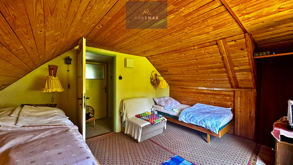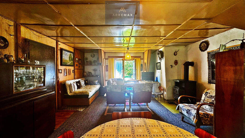 V prvním podlaží se nachází předsíň, ze které se dostanete do samostatného WC a koupelny. Dále pak do kuchyně, chodbičkou (relaxační pokoj) do hlavní místnosti o velikosti 30 m2, v zimě Vás zde zahřejí krbová kamna, samozřejmě nechybí dobový nábytek a dekorace. Z této místnosti se dostanete na terasu a zahradu samostatným vchodem. O patro výše se nachází dvě ložnice z nichž každá má 15 m2. Součástí suterénu je garáž o velikosti 25 m2, dále technická místnost a další prostor o velikosti 11 m2 s možností posezení u krbu.