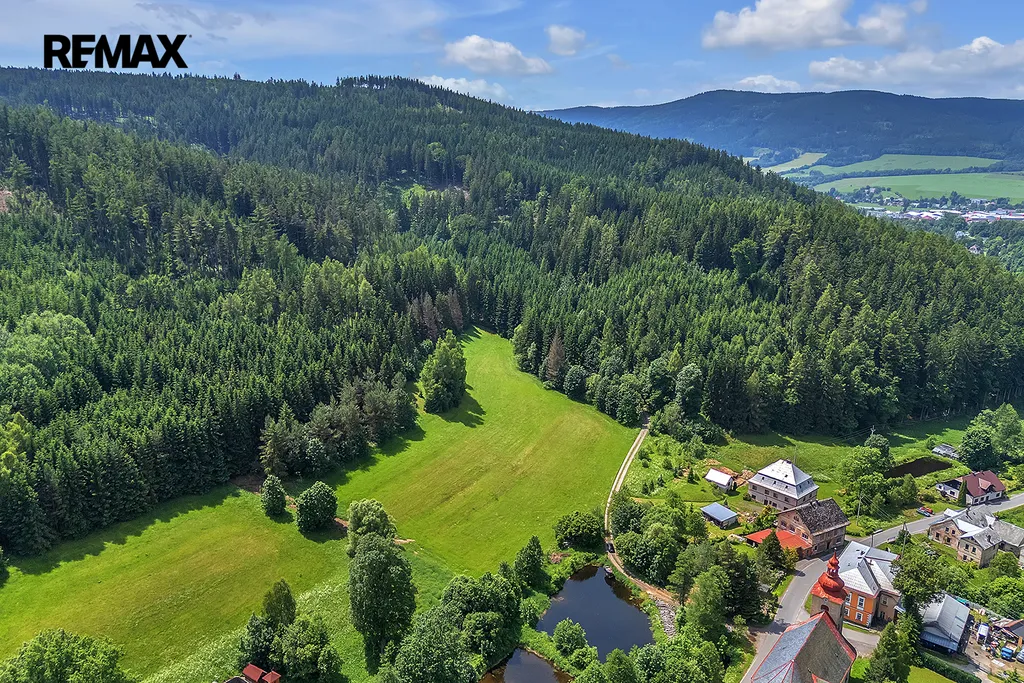 Nabízíme k prodeji pozemek o výměře 3672 m2, nazvaný jako Pozemek 1, kde polovina pozemku je určena dle územního plánu ke stavbě objektu pro bydlení nebo pro rodinnou rekreaci, popřípadě penzionu, pokud bude stavba splňovat podmínky prostorové regulace.