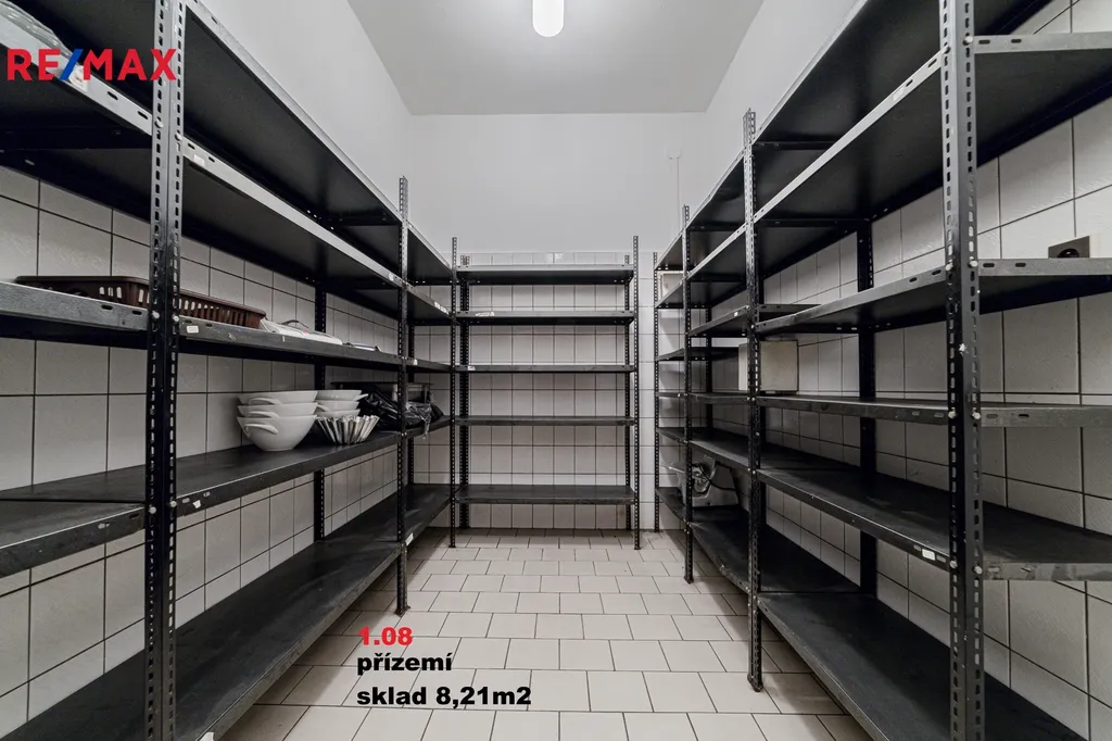 Zde se nachází prostorná restaurace s barem, ideální pro pořádání rodinných oslav, firemních večírků nebo romantických večeří. Samostatná jídelna/slavnostní salónek poskytuje intimnější prostředí pro menší akce. Moderní kuchyň splňuje nároky na kvalitní gastronomický provoz. V přízemí jsou dále k dispozici skladové prostory a zázemí pro personál, včetně sociálního zařízení.