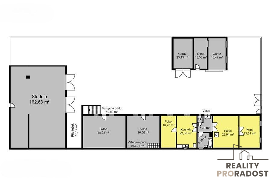 Přednosti: velká stodola a vedlejší stavby pro využití domu k podnikání