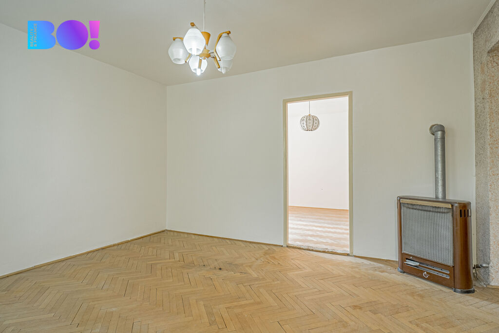 Dům je zateplen a má plastová okna. Byt je v původním stavu, na podlahách v pokojích jsou zachovalé parkety, v chodbě, koupelně a WC pak dlažba. K vytápění slouží v jednotlivých pokojích plynová kamna, ohřev vody zajišťuje plynová karma. Výhodou jsou 2 prostorné sklepy.