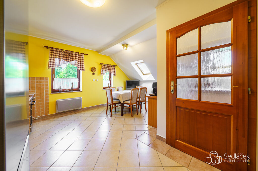 Nabízíme k prodeji prostorný a chytře řešený půdní mezonet 3+1 o užitné ploše 132 m² ve 2. patře menšího bytového domu. Předsíň je od bytu oddělena schodištěm.