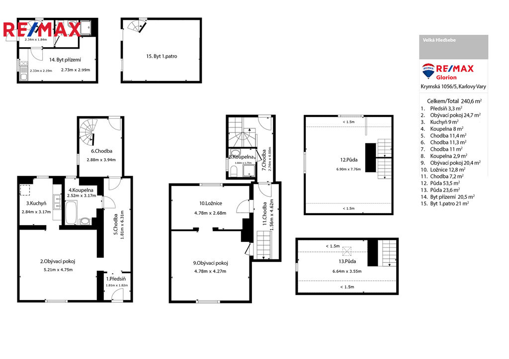 Dům má dvě nadzemní podlaží a navrch ještě půdu, kterou lze přebudovat a dál rozšířit obytný prostor – ideální pro šikovné ruce a kreativní mysl. Ano, je to výzva – ale odměnou může být místo přesně podle vašich snů.