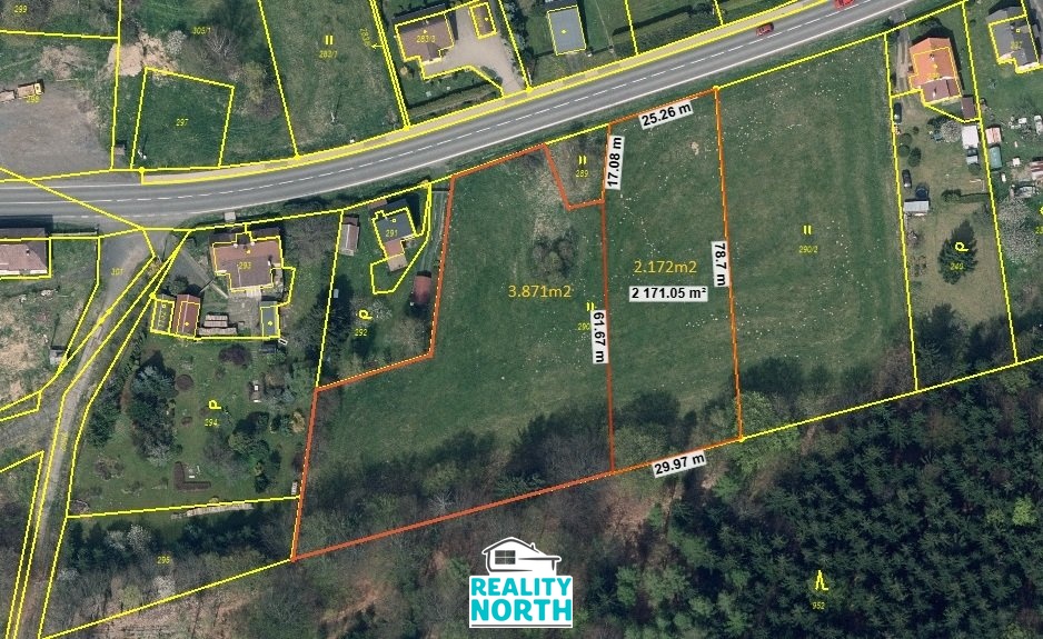 Reality North Vám zprostředkují prodej stavebního pozemku v katastrálním území Rybniště o velikosti 2.172m² Obdélníkový tvar pozemku je souběžný se silnicí Děčín-Rumburk, sklon pozemku je téměř rovina až nepatrně svažitý od nedalekého lesa k silnici . Vedení elektřiny je na druhé straně silnice, popř. cca 30m od kraje pozemku. Řešení vody buď rozšířením kapacity vodárny, nebo studnou na pozemku, odpad ČOV. Výhodou je možnost velikost pozemků změnit (po dohodě s majitelem) dle potřeby zájemce, nebo pozemek koupit celý - 6.043m2 za cenu 550Kč/m2. Více informací Vám rádi poskytneme v RK.