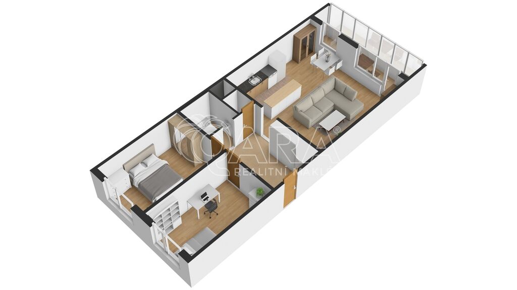 Byt je částečně zařízený nábytkem a vybavený kuchyňskou linkou se spotřebiči, což umožňuje okamžité bydlení bez nutnosti větších investic. V koupelně a na WC je zděné jádro a v chodbě najdete praktické vestavěné skříně. Může to být skvělá příležitost i k okamžitému pronájmu!