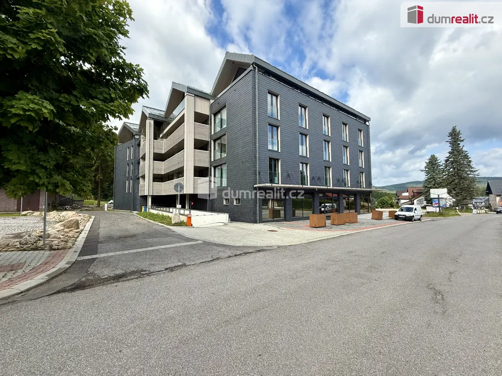 pronájem moderní komerční prostor o velikosti 45 m² s vlastní terasou, umístěný v novostavbě přímo v centru Harrachova – jednoho z nejvyhledávanějších horských středisek v České republice.