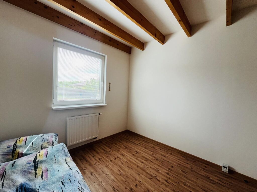 Novostavba rodinného domu v Českém Meziříčí, ul. V Poli, dřevostavba, dispozice 4+1 (možnost přestavby na 5+1), vestavěná garáž, venkovní garáž, nádrž na srážkovou vodu, celková plocha pozemku 685 m2 Kvalitně postavený a dobře dispozičně řešený rodinný dům. 1. nadzemní podlaží - vstupní hala s technickou místností a šatnou, 2 ložnice, koupelna, samostatné WC, obývací pokoj s jídelnou a kuchyňským koutem. Z obývacího pokoje vstup na slunnou terasu. V 2. nadzemním podlaží prostorná šatna a velkorysá obytná místnost vhodná k přepažení na dvě ložnice. Přímo u domu garáž s průchodem na zadní část zahrady, na zahradě umístěna ještě jedna garáž sloužící jako úložný prostor pro zahradní techniku. Topení v domě řešeno jako ústřední s vlastním plynovým kotlem a krbem umístěným v hlavním obytném prostoru. S ohledem na možnost vytápění hlavní obytné části krbovými kamny a nízkou energetickou náročnost domu jsou náklady na provoz domu velmi nízké.