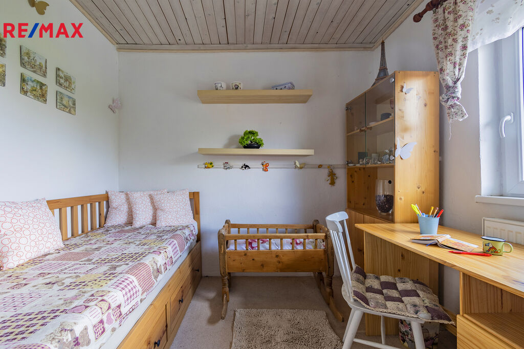 Dům má dva vstupy, které mu okamžitě dávají vícegenerační či praktickou tvář. V přízemí vás přivítá společenská zóna s přímým vstupem na terasu – skvělé místo pro ranní kávu, letní večery nebo posezení s přáteli. Dále se v přízemí nachází kuchyňská část se spíží, obývací pokoj, ložnice a koupelna s toaletou. V patře na vás čekají tři světlé pokoje a druhá koupelna.