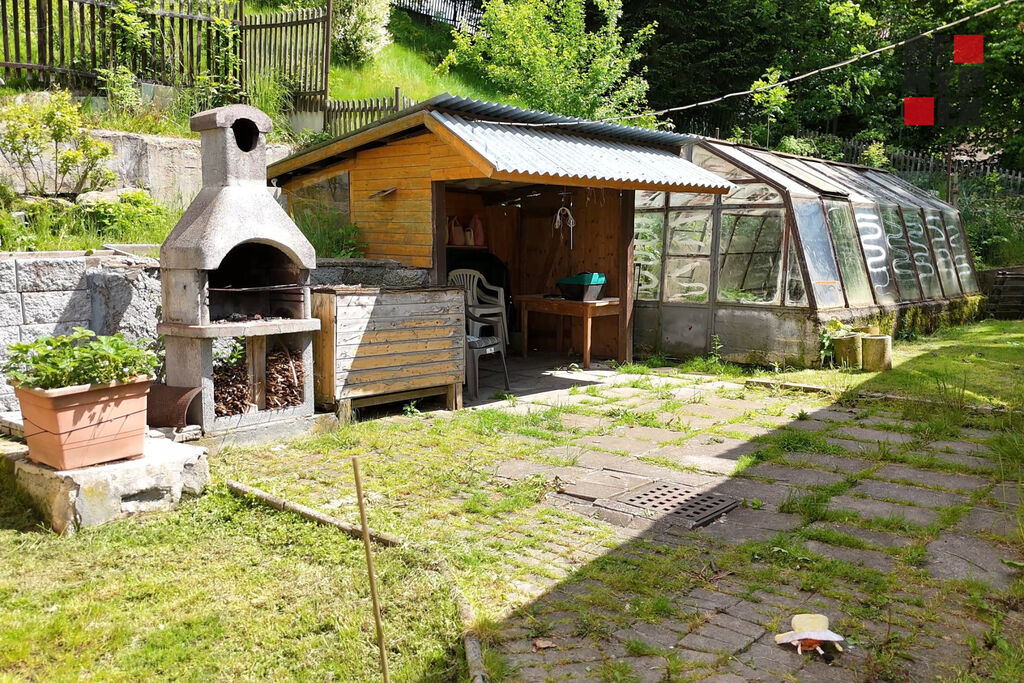 K domu náleží prostorná zahrada se skleníkem a hospodářskými budovami.