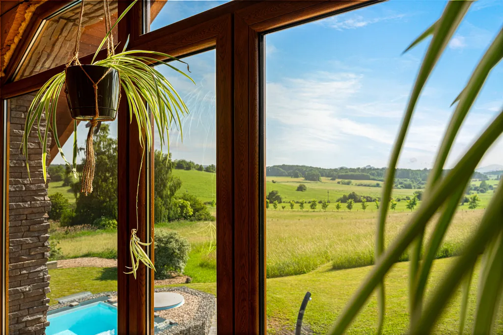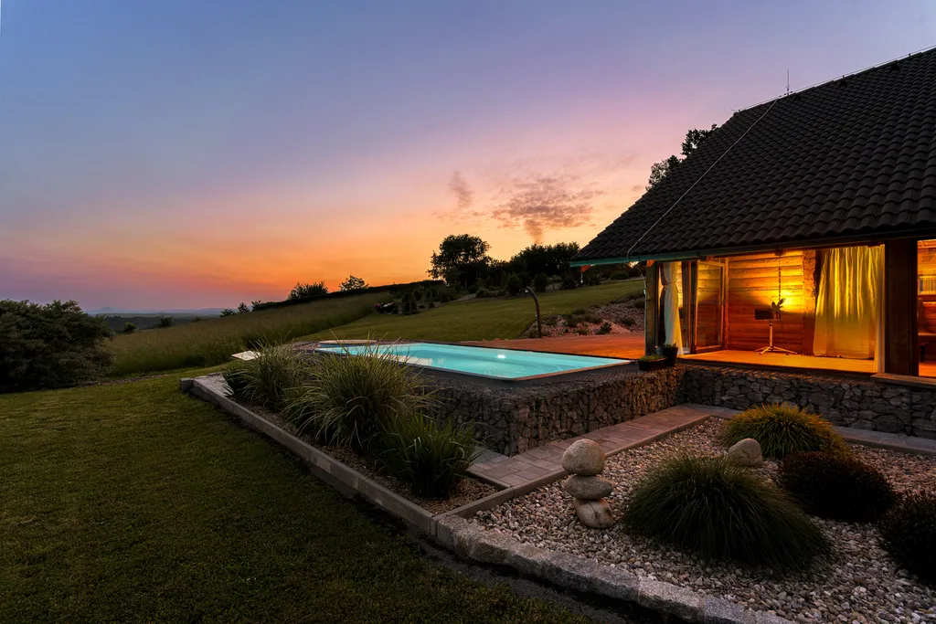 • Místo vás okouzlí panoramatickými výhledy a kouzelnými západy slunce, které si užijete ať už z hlavní terasy, z galerie v patře či z prosklené terasy orientované na JV stranu.