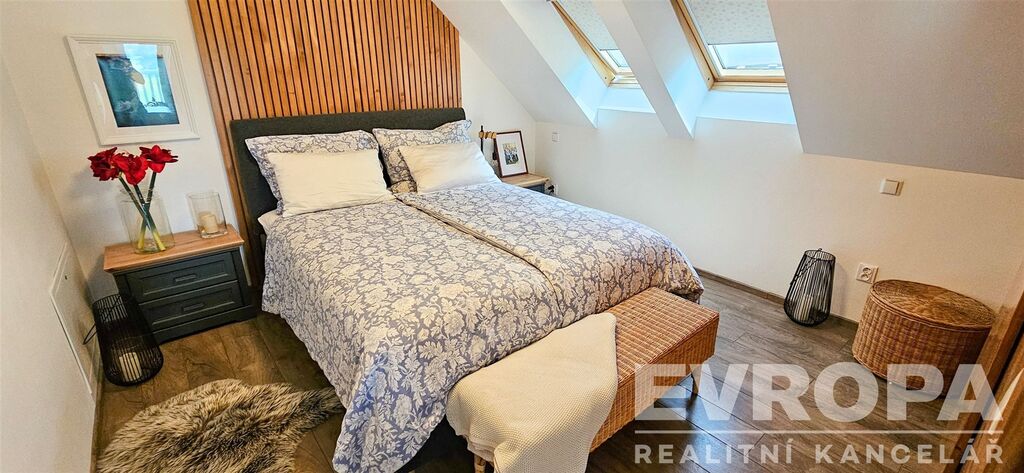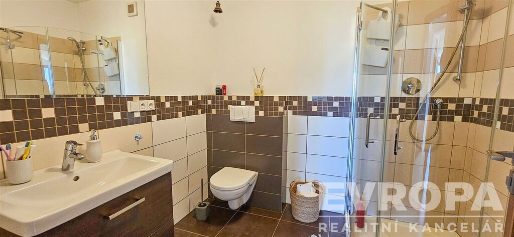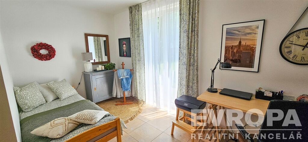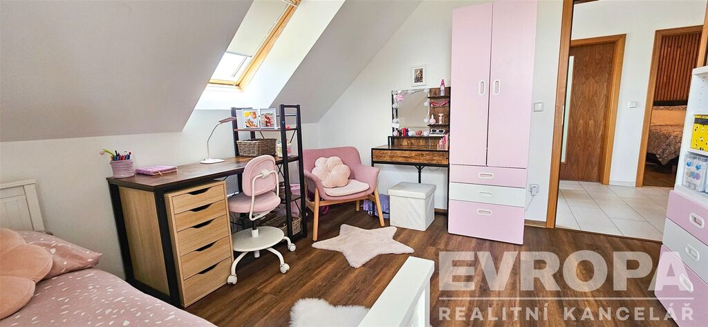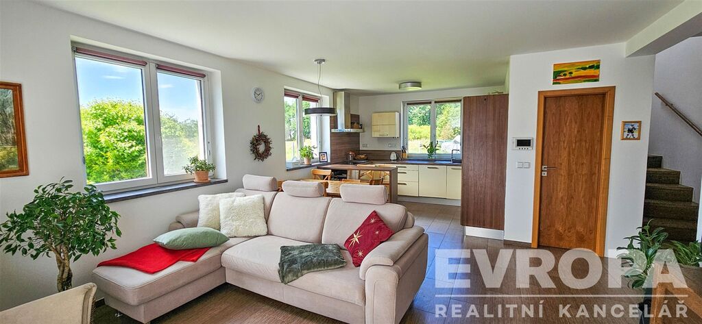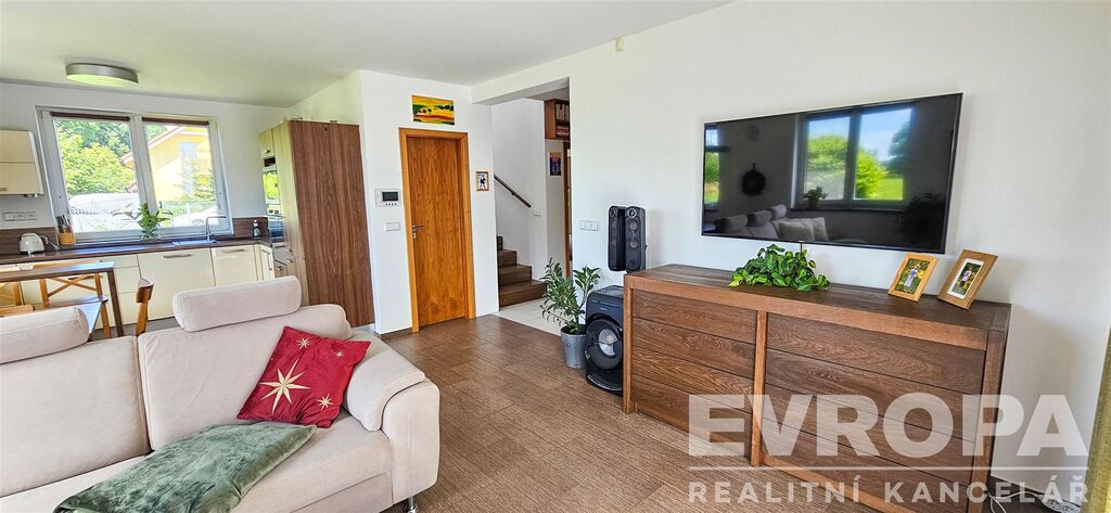 V přízemí domu se nachází chodba, koupelna s toaletou, prostorný prosvětlený obývací pokoj, kuchyň, pokoj/pracovna, technická místnost/komora. V 1. patře se nachází ložnice, dva pokoje a koupelna s toaletou. Z obývacího pokoje vede vstup na zahradu. Součástí domu je prostorná garáž (42 m²). Udržovaná zahrada představuje ideální místo pro odpočinek i chvíle s rodinou.