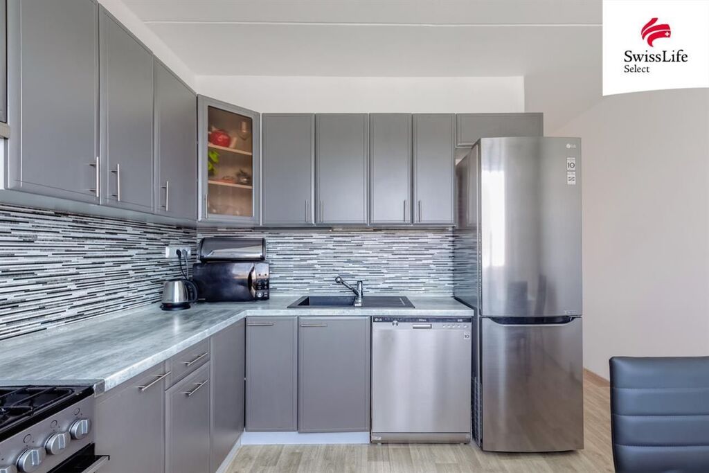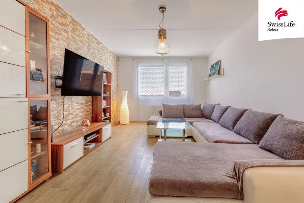 Byt prošel částečnou rekonstrukcí - má opravené rozvody vody, elektřiny, plynu a odpadů. Kuchyně s dostatkem místa na jídelní stůl, získala nový vzhled šedou rohovou linkou a hezkým obkladem - stejně jako opravená koupelna a samostatná toaleta. Líbivý kamenný obklad zdobí stěnu obývacího pokoje, se kterým sousedí ložnice s lodžií. Druhá - protější ložnice má výhled do vnitrobloku na vzrostlé stromy a sportovní areál. Poslední místností bytu je malý pokojík, který lze využít jako pracovnu nebo šatnu. Přepažením dlouhé chodby bytu je možné získat další úložné prostory.