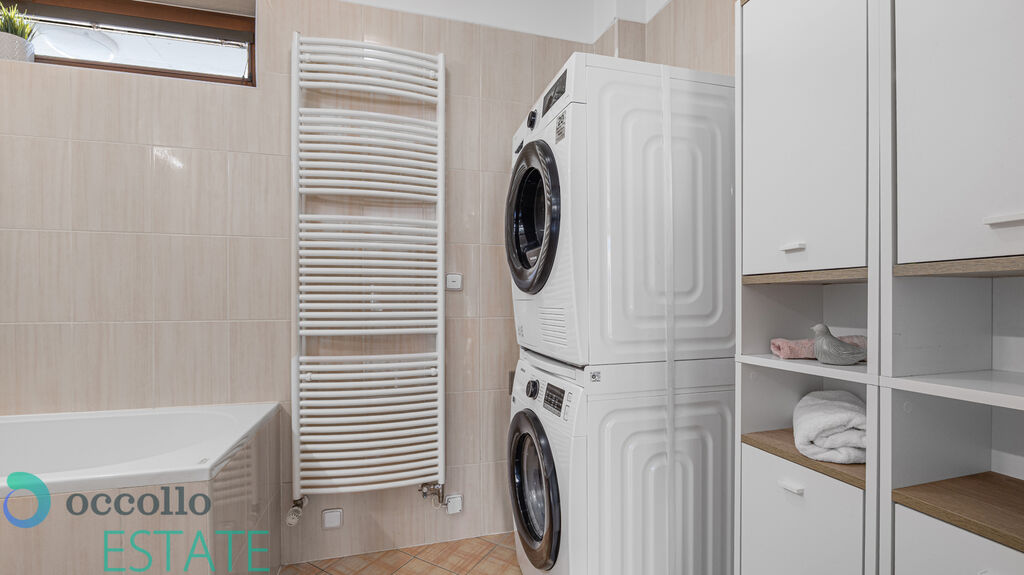 Byt je kompletně zařízen novým designovým nábytkem a kvalitními spotřebiči – vše bylo pořízeno před 1–2 lety, je v perfektním stavu a stále v záruce. Kupující tak nemusí investovat žádné další prostředky. Byt je připraven k okamžitému nastěhování či pronájmu.