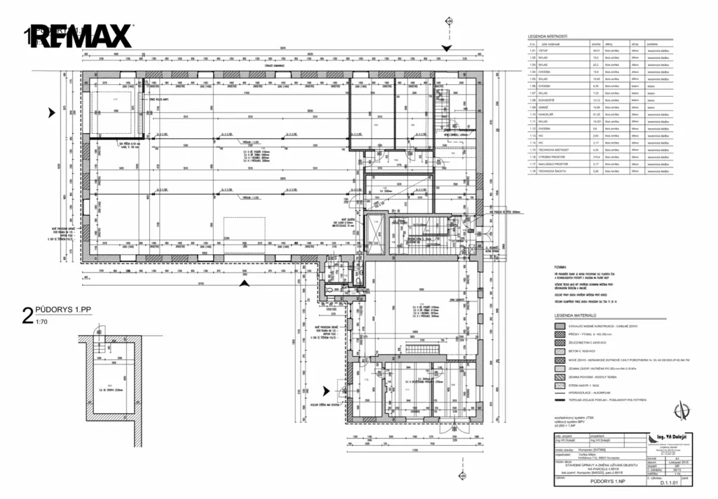 výměře 11,1 m2, recepce + vstup z ulice Nádražní o výměře 45 m2, schodiště do 2.NP o výměře 22