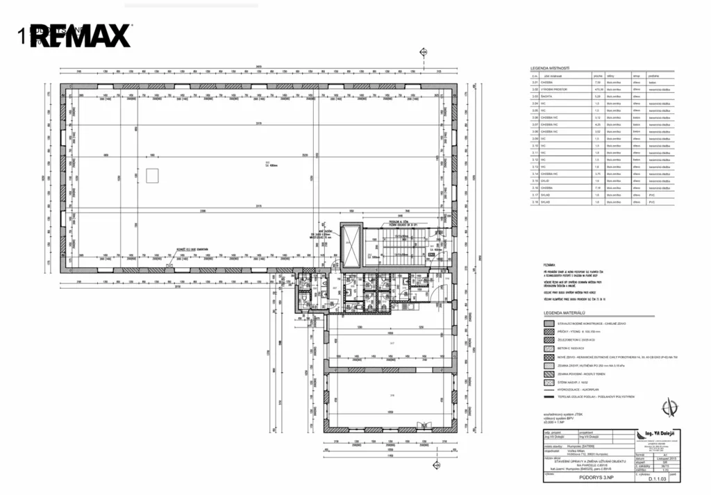 se zatížením 500 kg/m2 o výměře 472 m2, schodiště o výměře 24 m2, kancelář č. 1 o výměře 58 m2,