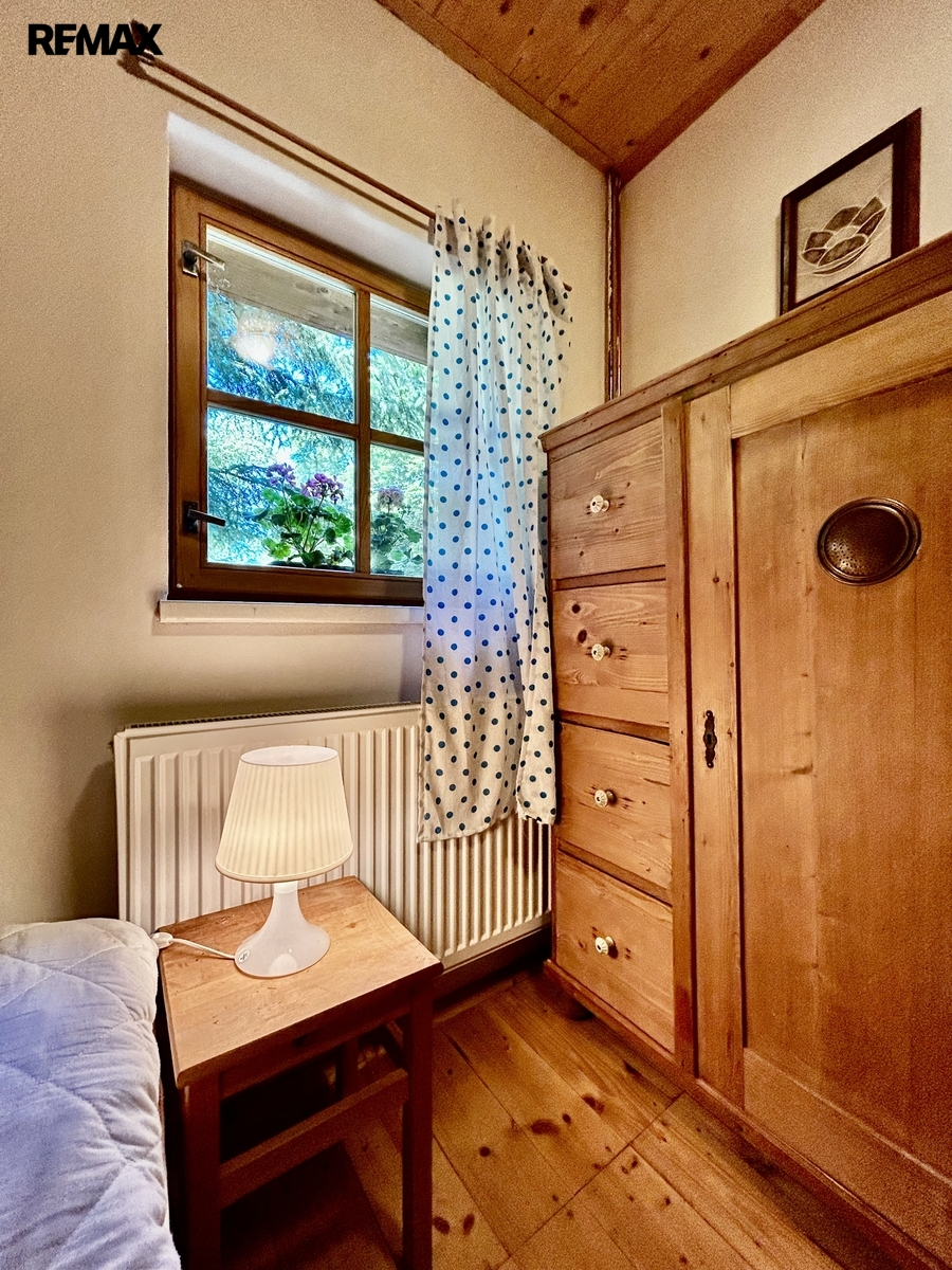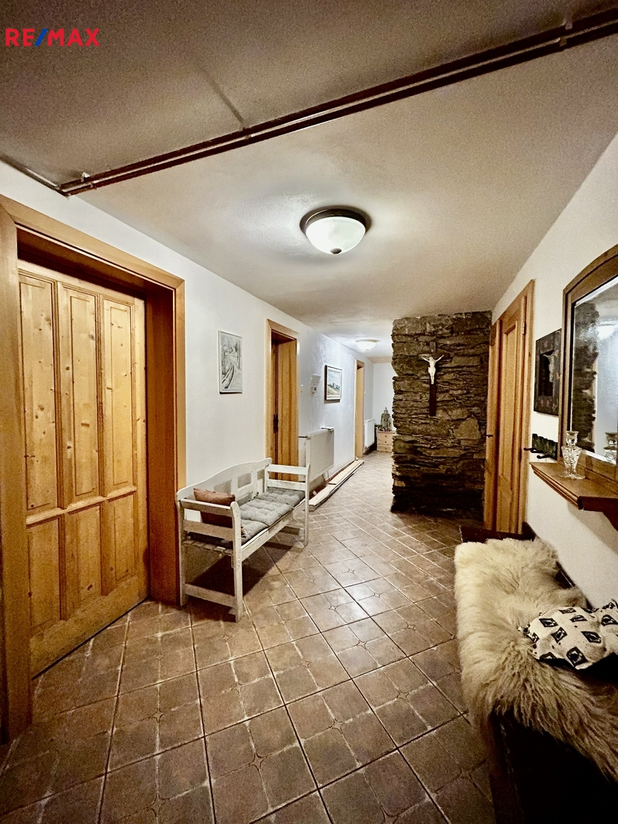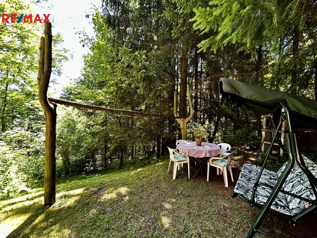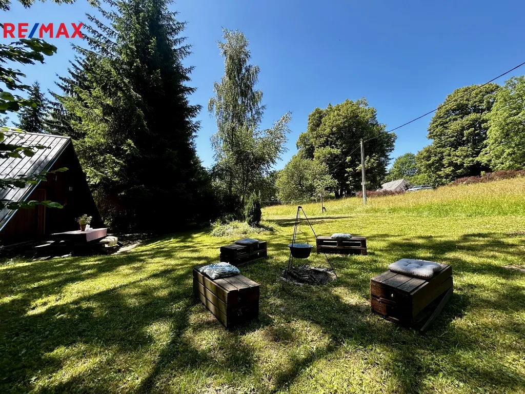 Zrekonstruovaná chalupa stojící v klidné části obce, kde je zajištěno soukromí díky velkému pozemku (louka, les). K dispozici je venkovní terasa s grilem, zahradním nábytkem, dětská houpačka, pískoviště, hřiště na volejbal nebo nohejbal, bazén. Nemovitost se skládá z přízemí a patra. V přízemí se nachází plně vybavena kuchyně, obývací pokoj, koupelna a technická místnost. Dále je k dispozici lyžárna (popř. uložení kol). Dubové schody vedou do salonku prvního patra, kterým je možnost vstoupit do 4 ložnic a vestavěného patra pro dvě osoby. Chalupa poskytuje ubytování pro 6 osob ve 4 ložnicích. Nemovitost lze využít k soukromému bydlení nebo jako investiční příležitost k pronájmu, vzhledem k tomu, že je celoročně obyvatelná a přístupná.