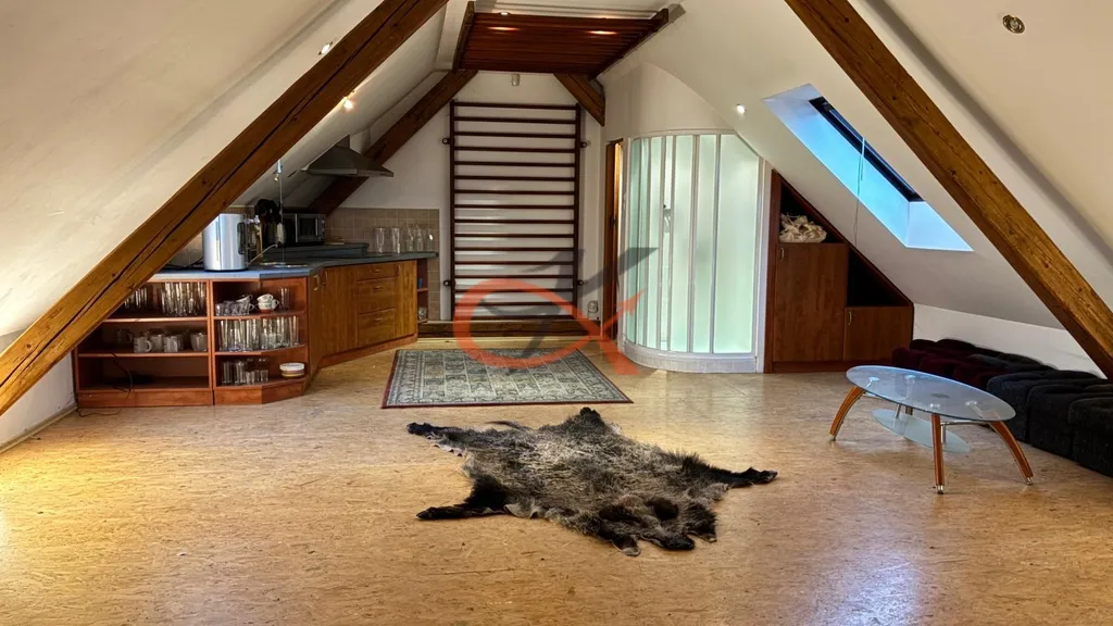 Dispozice : Obytné podkroví 1+kk ve 2.NP s kompletním sociálním zařízením a plně vybavenou kuchyňskou linkou, vytápění zajištěno krbem s vložkou, podlahová plocha 56m2 , v 1.NP stavby je možnost dokončení další místnosti o celkové podlahové ploše 66 m2 dle Vašich představ. Na pozemku se dále nachází venkovní krb a dostatečný prostor pro posezení.