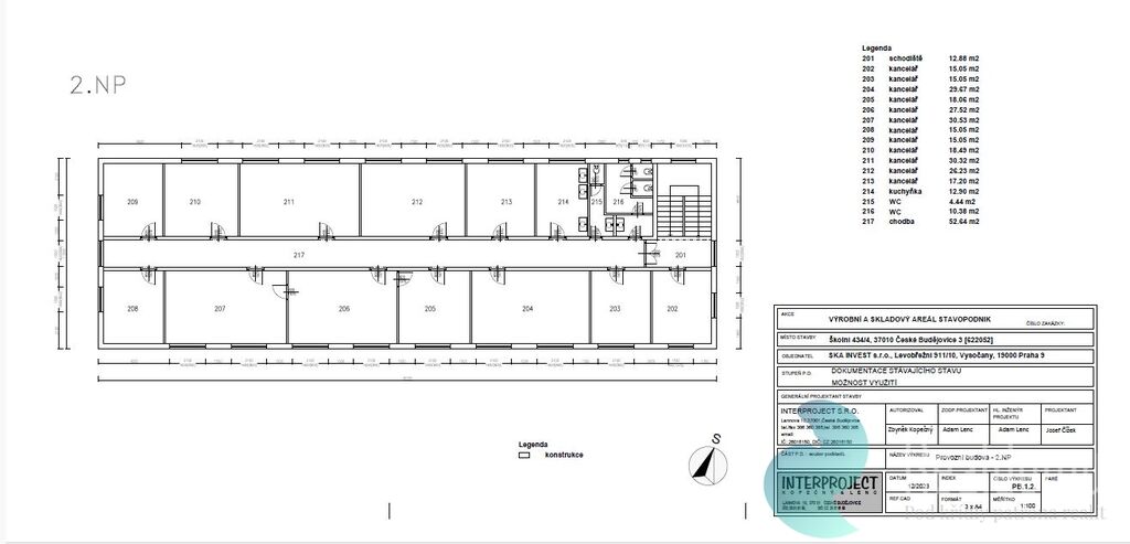 Předmět prodeje je kompletní tří podlažní administrativní budova, která se z 37 kanceláří, archivu, sociálního zázemí a obchodní prostory o výměře 169 m2.