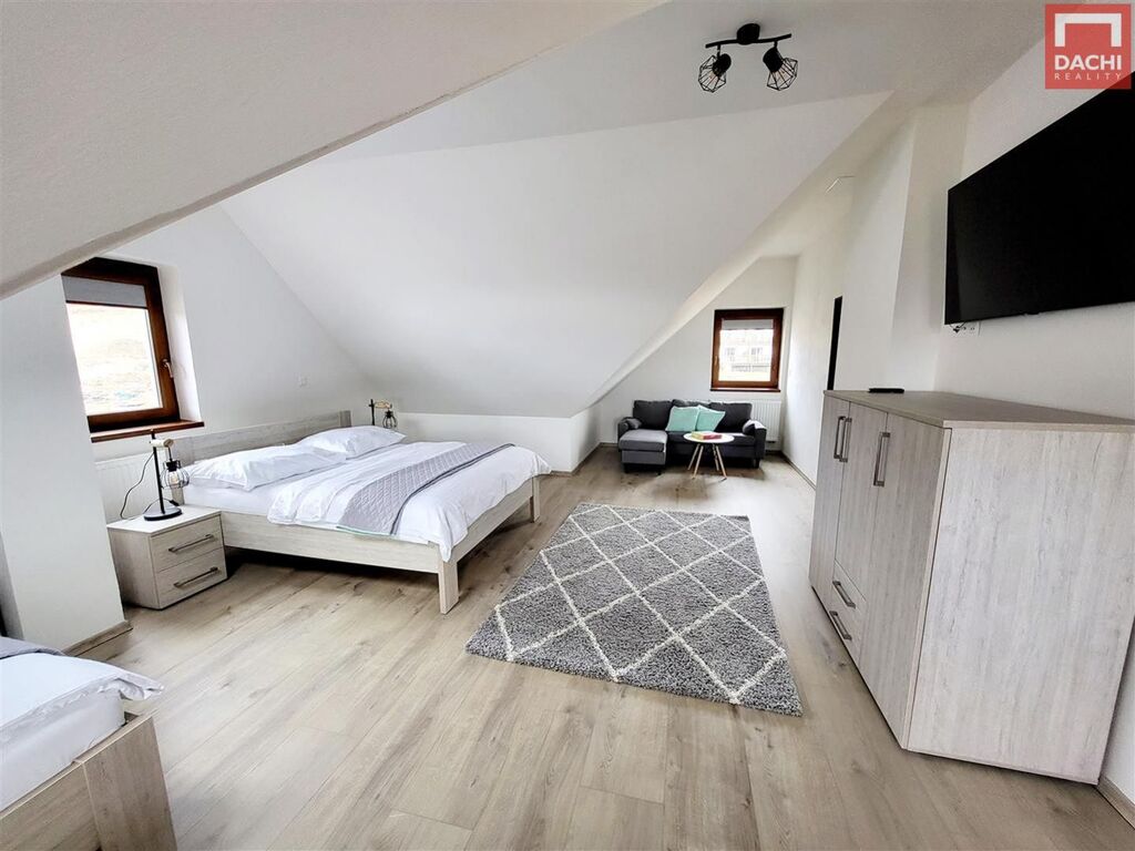 Nabízíme k prodeji stylový, kompletně vybavený mezonetový apartmán o celkové výměře 93 m, včetně balkonu o rozloze 5,6 m. Nemovitost se nachází v klidné a žádané lokalitě Horní Václavov u Bruntálu, v bezprostřední blízkosti oblíbené lázeňské obce Karlova Studánka a srdce Jeseníků. Tato oblast je známá nejčistším vzduchem v Česku a širokými možnostmi turistiky, lyžování i relaxace.