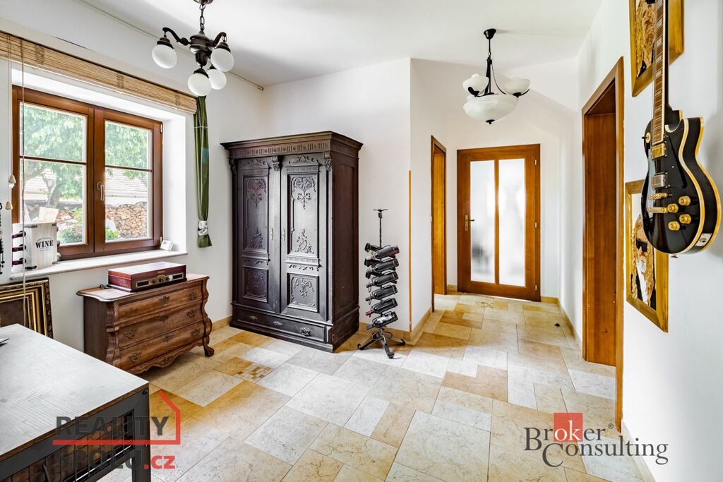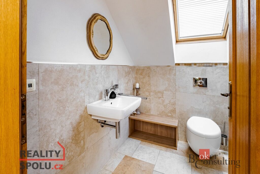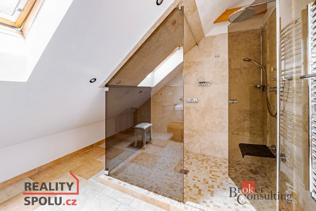 Podkroví je vybaveno velkou zkušebnou, kterou lze využít jako ateliér, pracovnu nebo hobby místnost. Dále zde najdete dvě samostatné ložnice, šatnu, prostornou a nadčasovou koupelnu a samostatné WC. V celém podkroví je navíc kompletní klimatizace značky Mitsubishi.