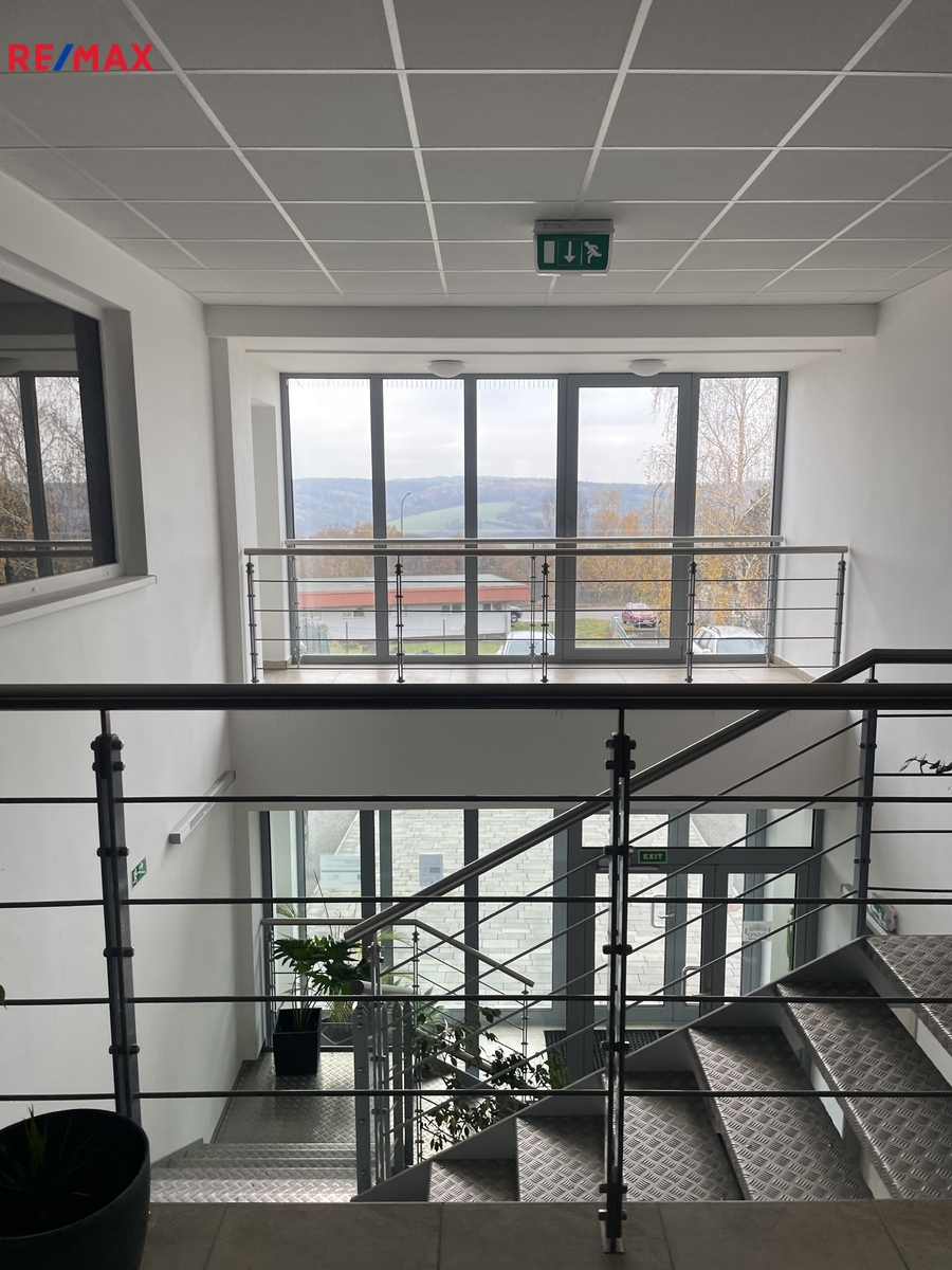 Kanceláře a zázemí v 1 a 2. nadzemním podlaží → ideální pro kanceláře, zasedačky nebo provozní logistiku na ploše 213 m2