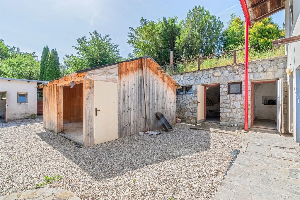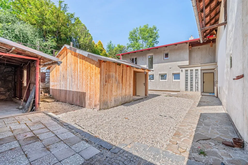 Prostorný patrový rodinný dům 5+2, který svojí dispozicí splňuje nároky na dvougenerační bydlení, je nyní koncipován jako dva samostatné byty. Na uzavřeném dvoře se nachází dva sklepy (jeden vinný), zastřešené posezení, krytý průjezd, dílna, udírna.