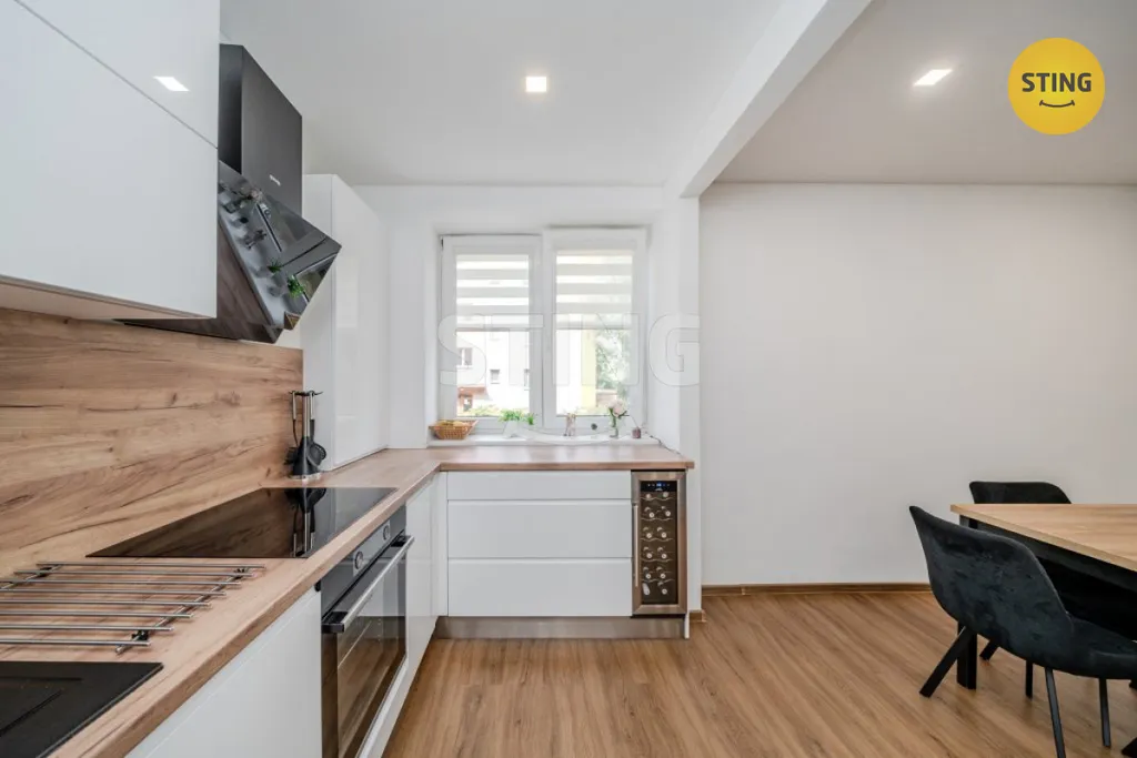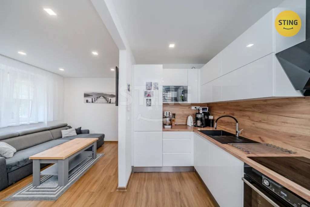 Dispozice bytu je řešena moderně a vzdušně – prostorný obývací pokoj s kuchyňským koutem, dvě samostatné ložnice, koupelna s vanou, umyvadlem se skříni a zrcadlem, toaleta a dostatek úložného prostoru. V rámci rekonstrukce byly provedeny nové rozvody elektřiny, vody a odpadů, nové podlahy, omítky, interiérové dveře i moderní kuchyňská linka na míru.