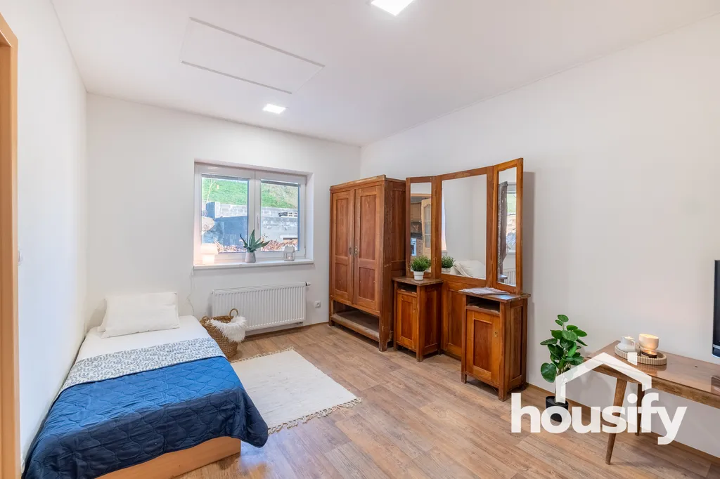 Hned při vstupu do bytu vás přivítá útulná předsíň, ze které se dostanete do koupelny s toaletou. Koupelna je vybavena moderním walk-in sprchovým koutem, otopným žebříkem a přípojkou na pračku, v koupelně se nachází také plynový kotel. Hlavní obytnou část tvoří prostorný obývací pokoj propojený s kuchyní. Kuchyňská linka je vybavena moderními spotřebiči, včetně trouby, indukční desky a digestoře. Obývací prostor působí díky zvýšenému stropu až do úvrati velmi vzdušně a moderně. Z obývacího pokoje pak vstoupíte do ložnice, která je situována tak, aby poskytovala maximální klid a výhled do zahrady.