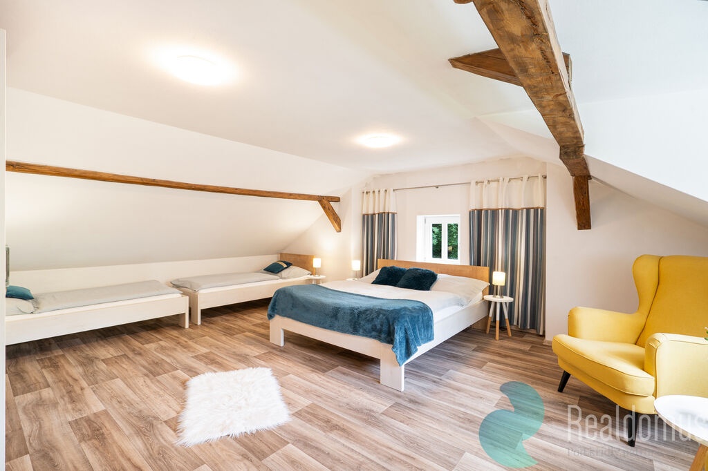 REALDOMUS nabízí v exkluzivním zastoupení majitele výjimečnou nemovitost - Apartmány Rosenberg. Ta je situovaná v klidném prostředí romantického města Rožmberk nad Vltavou, jen pár kroků od řeky Vltavy. Ideální jak k okamžitému podnikání, tak pro rodinnou rekreaci či vícegenerační bydlení. Nemovitost je momentálně využívaná ke komerčním účelům, je velmi žádáná a obsazenost je vysoká.