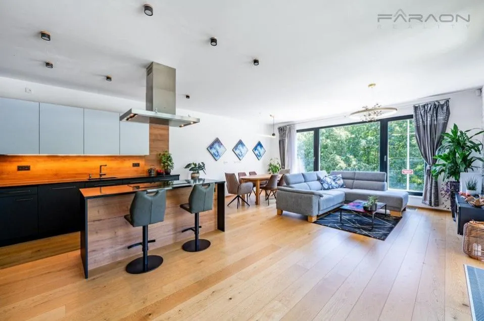 Moderní prémiový byt 3+kk na prodej o celkové ploše 137,9 m2, s prostornou jihozápadní terasou. V ceně je zahrnut sklep, dvě extra velká podzemní garážová stání i celé nadstandardní vybavení na míru, v hodnotě 3 mil Kč.