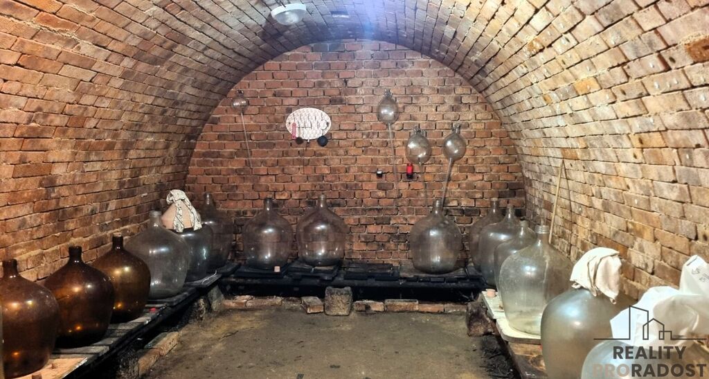 Sklepy pod chatou jsou dva. Jeden je kvelbený na víno a druhý, s rovným stropem pod terasou, na skladování zeleniny.