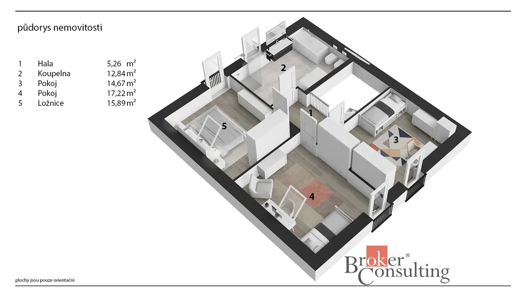 Uvedené výměry jsou orientační. Veškeré zveřejněné údaje obsažené v tomto inzerátu mají pouze informativní charakter a nejsou nabídkou ve smyslu § 1731 nebo § 1732 občanského zákoníku, ani se nejedná o veřejný příslib dle § 1733 občanského zákoníku.