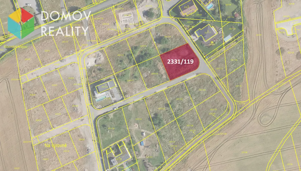 Pozemek je rohový, mírně svažitý, s již vybagrovanou srovnanou plochou připravenou na výstavbu rodinného domu.