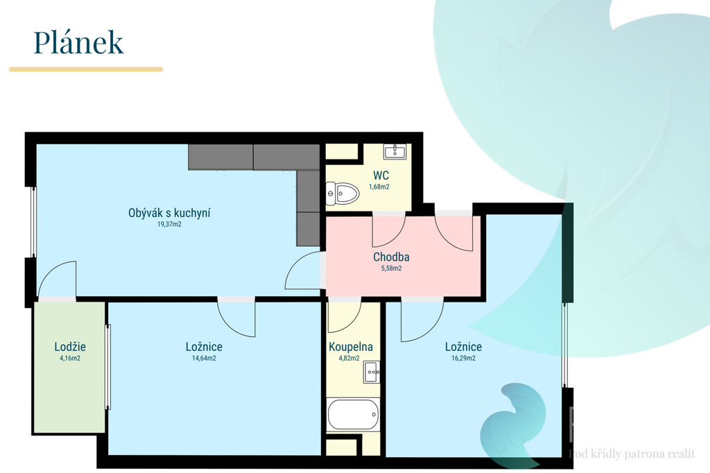 Realdomus ve výhradním zastoupení zprostředkuje prodej bytu v osobním vlastnictví v ulici Pod lihovarem v Benešově u Prahy. Celková plocha bytu činí 66,54 m², z čehož užitná plocha představuje 62,38 m² a plocha lodžie je 4,16 m². K bytu náleží ještě sklep o velikosti 2,45 m2.