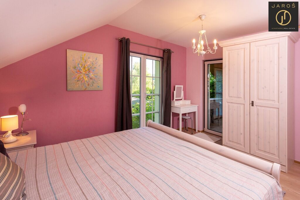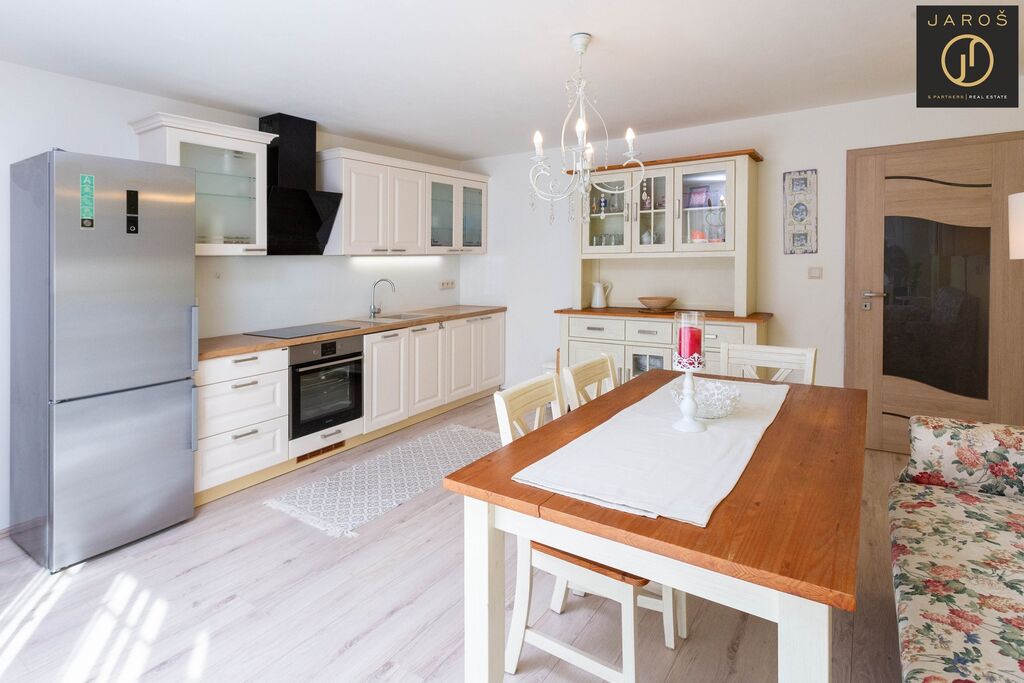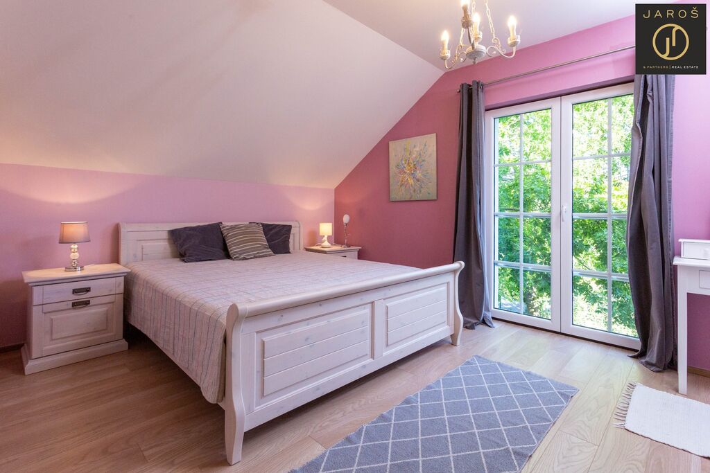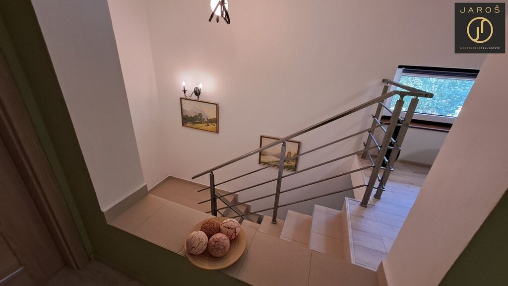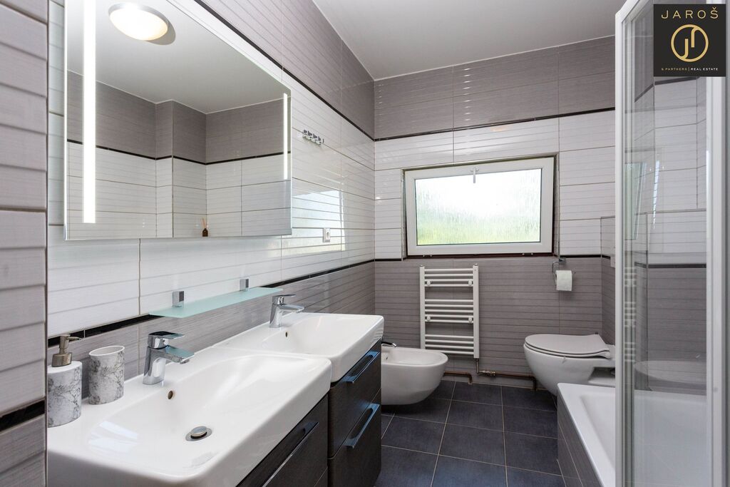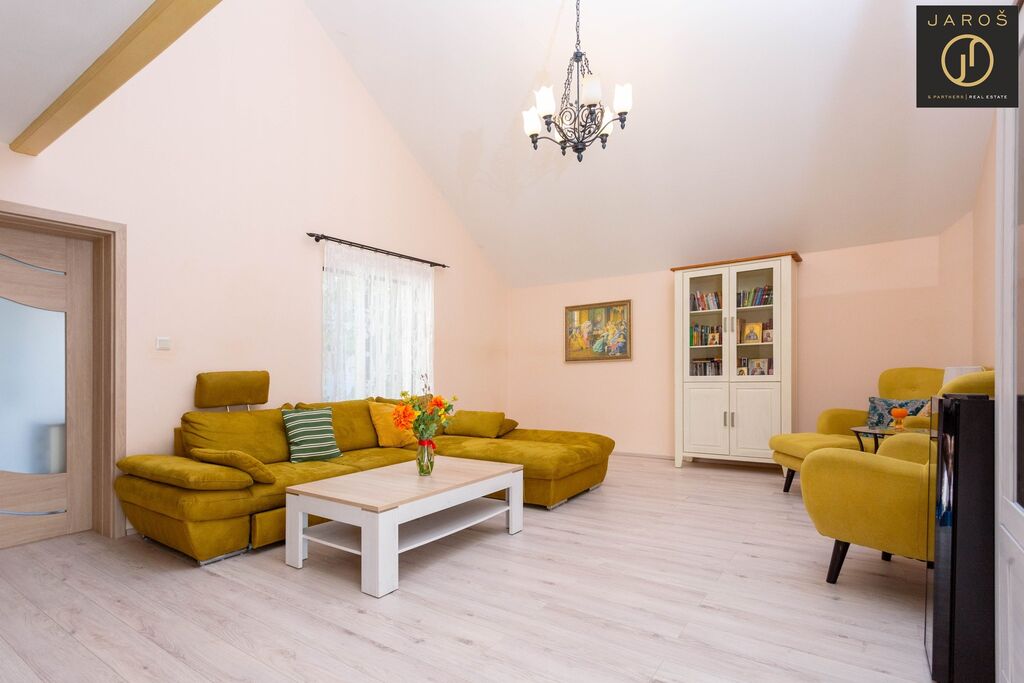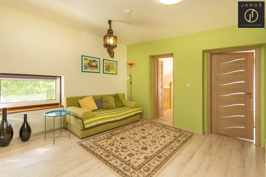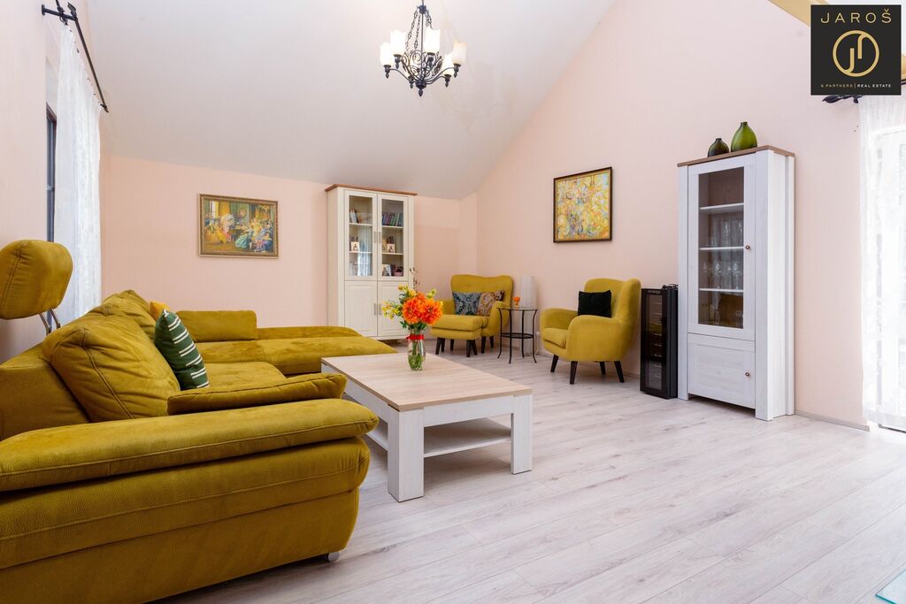 Dům ze všech stran obklopený zelení působí velmi světlým, vzdušným a prostorným dojmem i díky tomu, že má souseda pouze z jedné strany. Svým vybavením a praktickým uspořádáním bude vyhovovat i početnější rodině.  Vřele doporučujeme!