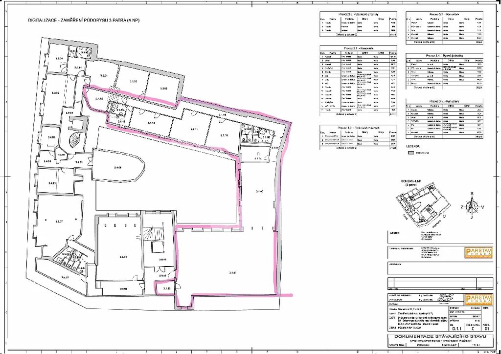 Nabízíme k pronájmu kanceláře s klimatizací o velikosti 424 m2 ve 3.patře: